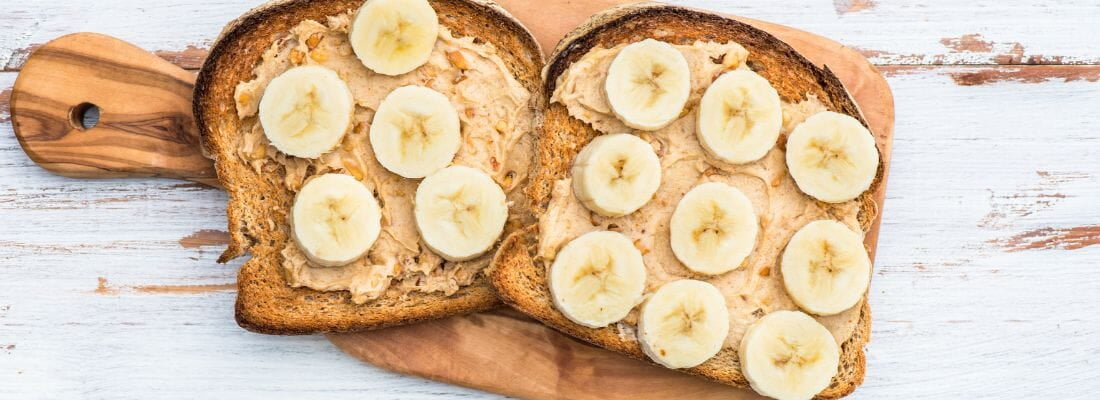 Toast a slice of whole-grain bread and spread it with some nut butter. Top it with sliced bananas for a quick and satisfying breakfast.